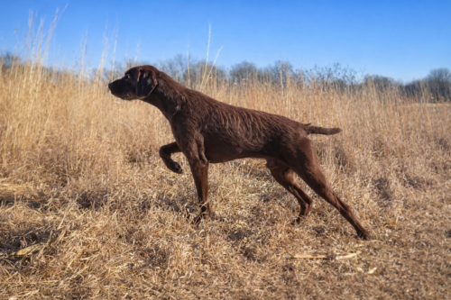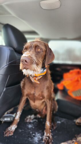 Huck is a proven, versatile hunting dog from Keigley Branch Pudelpointers (Central Iowa), offering an ideal balance of performance ability and family temperament.