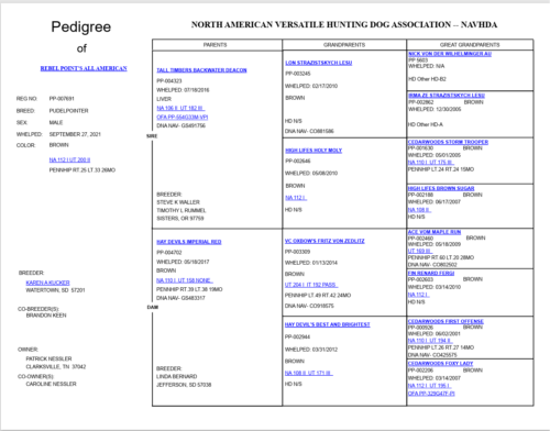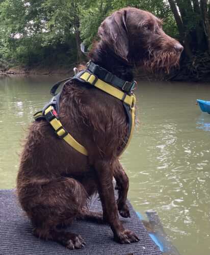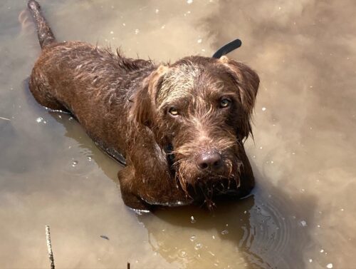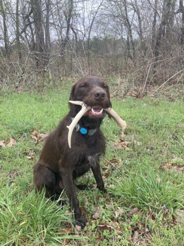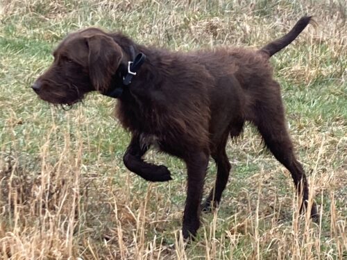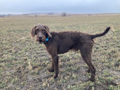 Lorax is an even-tempered and efficient hunter. His best traits are his cooperation and trainability. Lorax has proven his hunting ability with furred and feathered game to include quail, duck, woodcock, squirrel, rabbit, dove, and white-tailed deer. He achieved his UT prize 2 at the young age of 2 years old with a first-time trainer. Lorax is a medium ranging dog with the determination, drive, and endurance to do long hunts. He is also a perfect family companion, able to connect with people, is gentle with children, and displays high emotional intelligence. Lorax has been a family dog since day 1 and we can’t imagine living without him. I am more than excited to watch Lorax’s bloodline continue and make Pudelpointers the best versatile breed they can be.