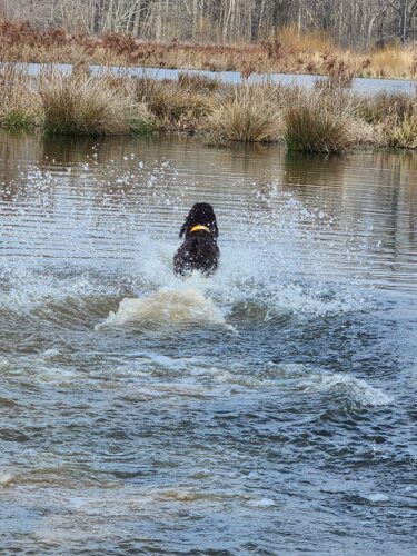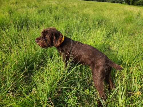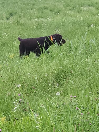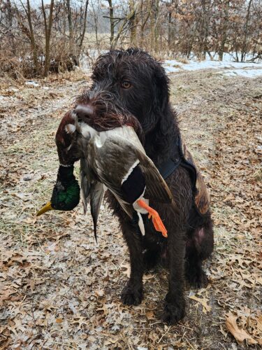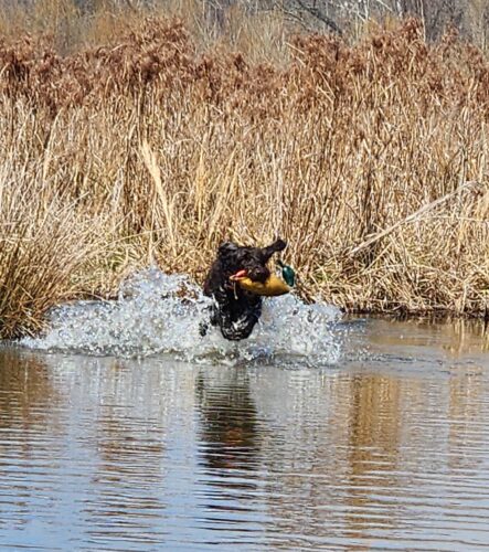 Memphis is very cooperative and in absolutely no way aggressive. He is mainly a retriever but is good in the field chasing upland birds. He is a medium range dog in the field ranging up to 150yds. In water is where he excels as he has the size and strength to power through all types of marsh, fields, and over logs. He has hunted ducks in Kansas and TN and loves it!