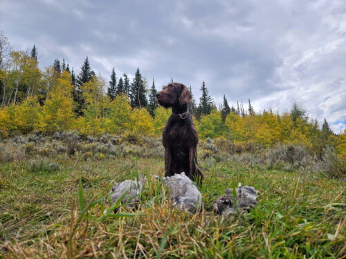Due to his intelligence he is an extremely savvy bird hunter. He has found and retrieved 10 different species of wild birds in 9 states. He has an uncanny ability to put the pieces together so much faster than every other dog we hunt with. He has the right combination of smarts and confidence to range appropriately to the terrain, which contributes to his ability to locate birds. You will see him push 400yds plus in the wide open chukar hills then the next day he can be my guide dog on a preserve and stay within 50yds the whole day.